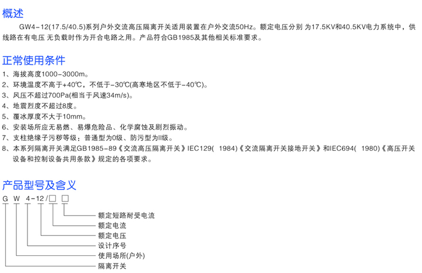GW4-12(17.5/40.5)系列戶外交流高壓隔離開關